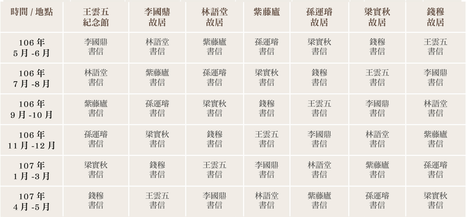 展覽地點|採七處名人故居巡迴展覽方式,詳如下表【點此看大圖】