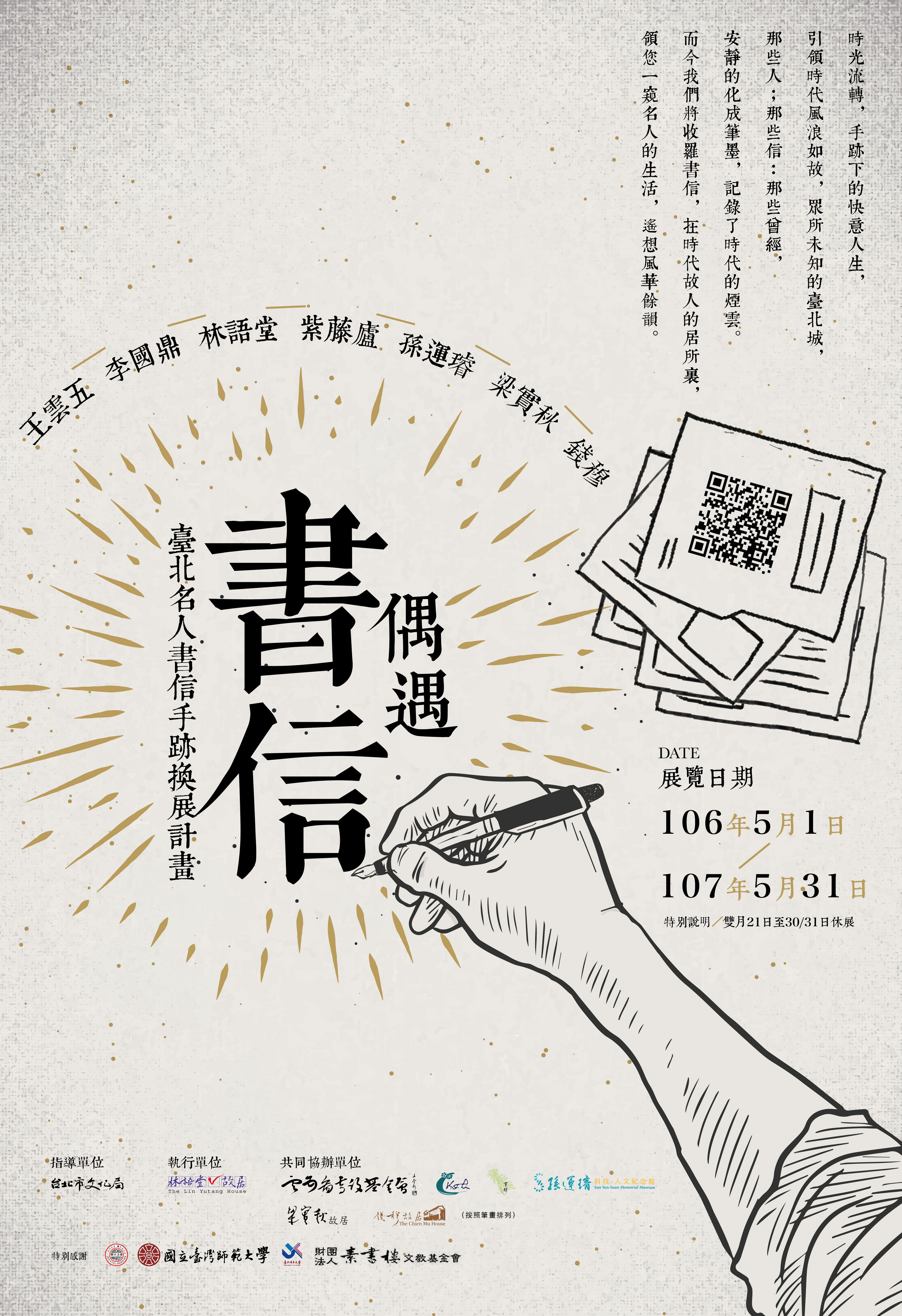作為台北市政府文化局委外館所代表的林語堂故居,選在春夏交會之際,企劃「書信偶遇──臺北名人書信手跡換展計畫」,特別邀請王雲五基金會、李國鼎故居、紫藤廬、孫運璿科技.人文紀念館、梁實秋故居和錢穆故居和我們一同協力,提供各館所名人書信手稿加入巡迴展覽的行列,期望經由文獻手稿與故居建築的交流與互動,為名人故居開創出不一樣的展示風景與內涵興味。