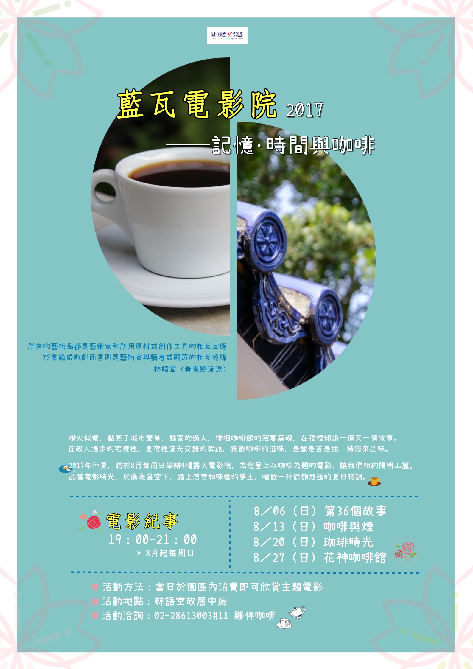 2017年仲夏,將於8月每周日舉辦4場露天電影院,為您呈上以咖啡為題的電影,讓我們相約陽明山麓。品嘗電影時光,於廣袤星空下,踏上感官和味蕾的夢土,啜飲一杯餘韻悠遠的夏日特調。