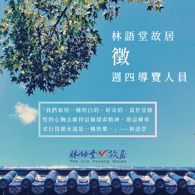 首頁 》 故居消息 》 林語堂故居|徵週四導覽人員