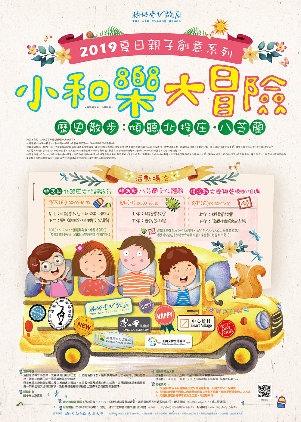 2019夏天,我們追隨小和樂的腳步與精神,延續每年活動的理念,我們與士林北投地區的藝文及生態館舍連結,結合歐美藝術巴士及在地小旅行的概念,