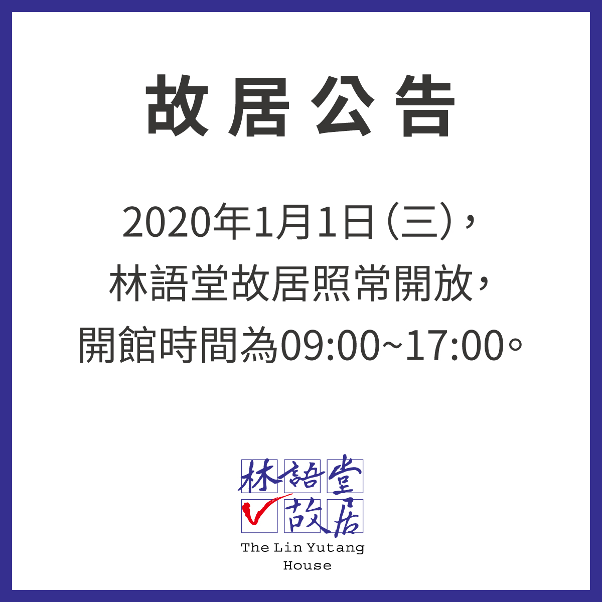 故居公告|2020年1月1日(三)林語堂故居照常開放