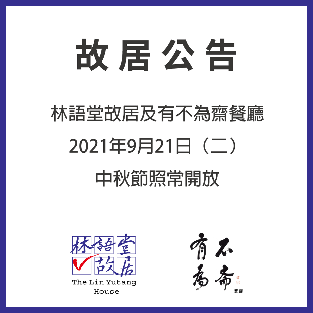 林語堂故居及有不為齋餐廳中秋節照常開放