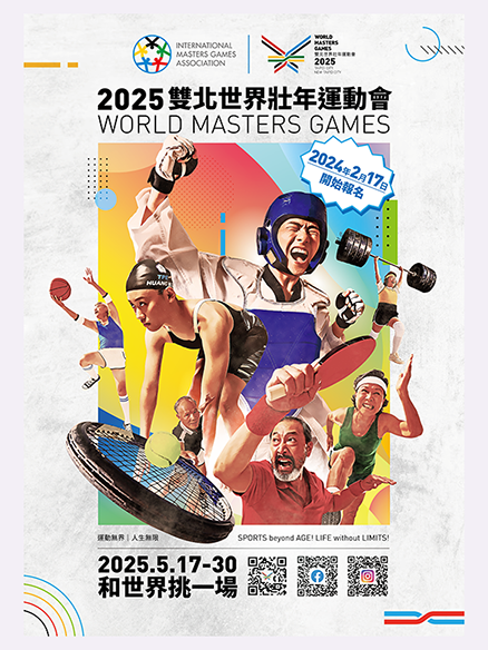 2025雙北世界壯年運動會於2025年5月17至30日舉行,共有35種運動種類其中包含帕拉運動組別,年滿30歲無需選拔即可參賽,今年2月17日官網開放報名,等你一起和世界挑一場!